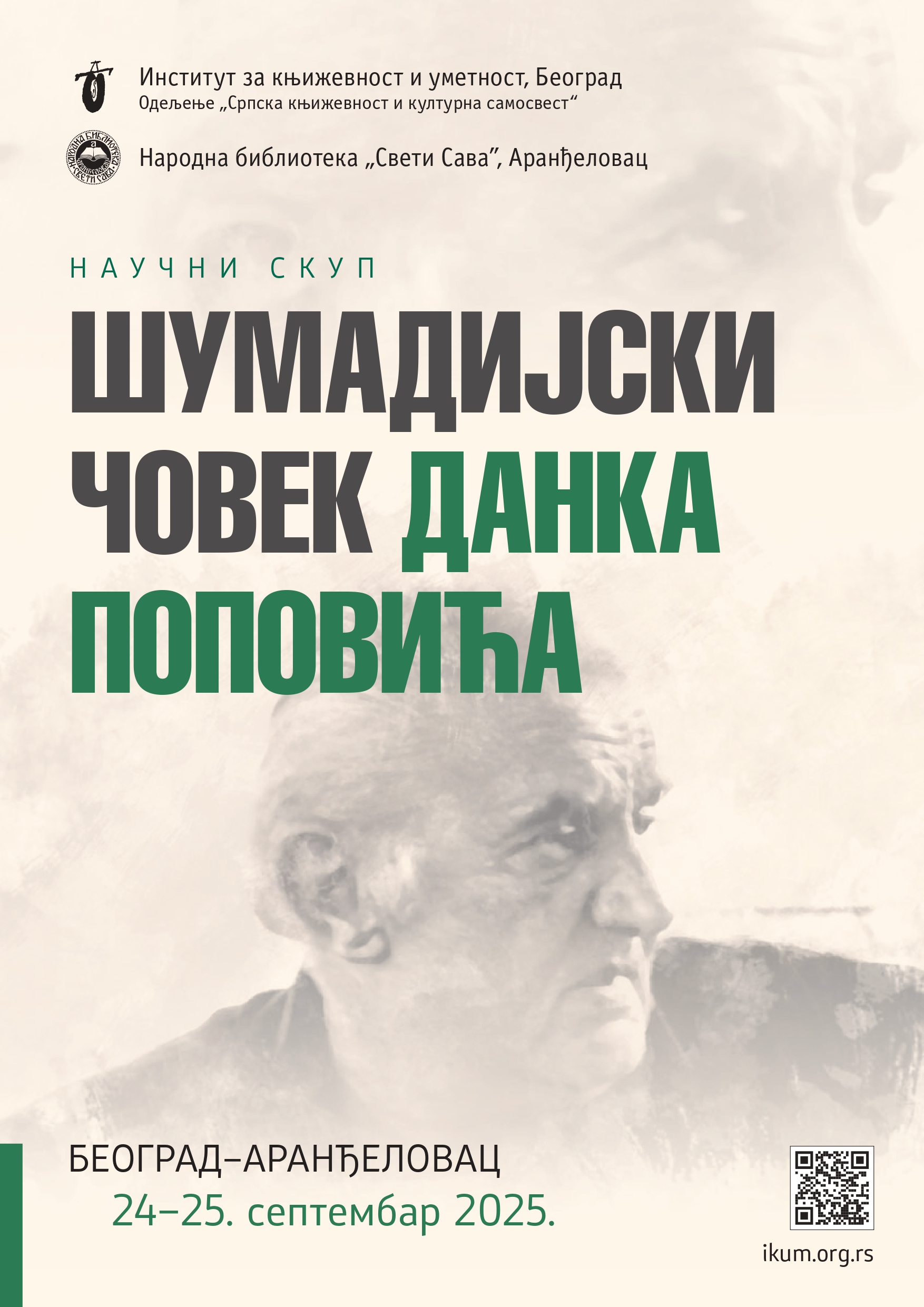 Институт за књижевност и уметност (Одељење „Српска књижевност и културна самосвест“), заједно с Народном библиотеком „Свети Сава“ из Аранђеловца, приређује дводневни научни скуп Шумадијски човек Данка Поповића. Скуп почиње 24. септембра 2025. у библиотеци Института (Краља Милана 2, III спрат) а наставља се наредног дана, 25. септембра, у пишчевом родном граду.